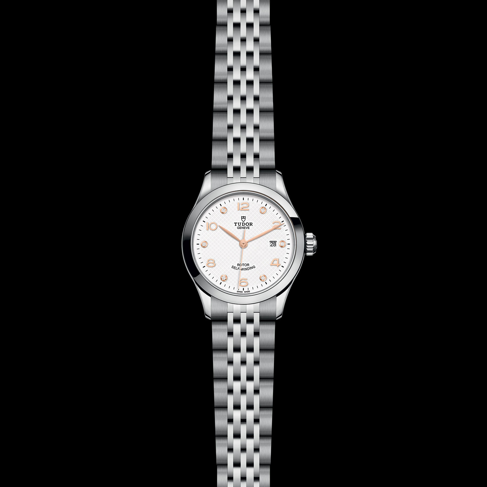 Steel bracelet, 7 rows, satin-brushed external links, polished centre links, with folding clasp and safety catch