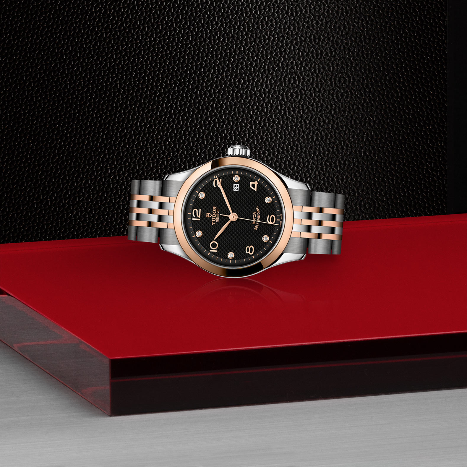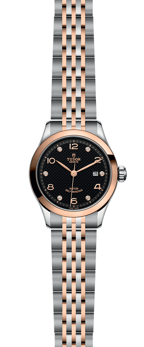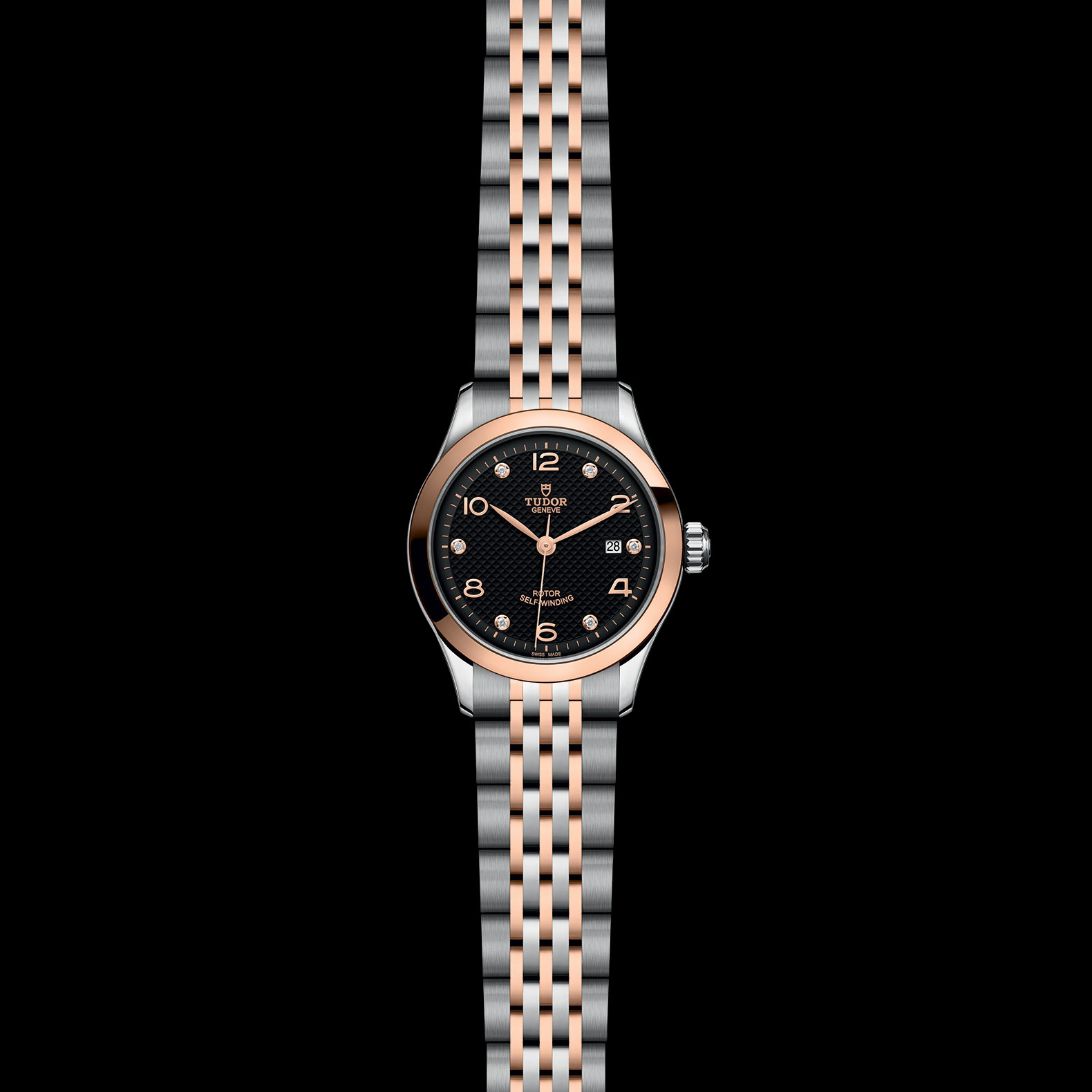 First center links in steel or solid rose-gold. Remaining center links in steel or steel covered by a 0.2mm rose gold cap