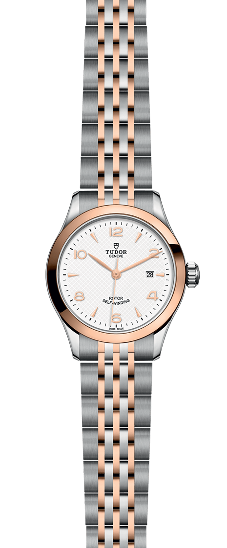 First center links in steel or solid rose-gold. Remaining center links in steel or steel covered by a 0.2mm rose gold cap