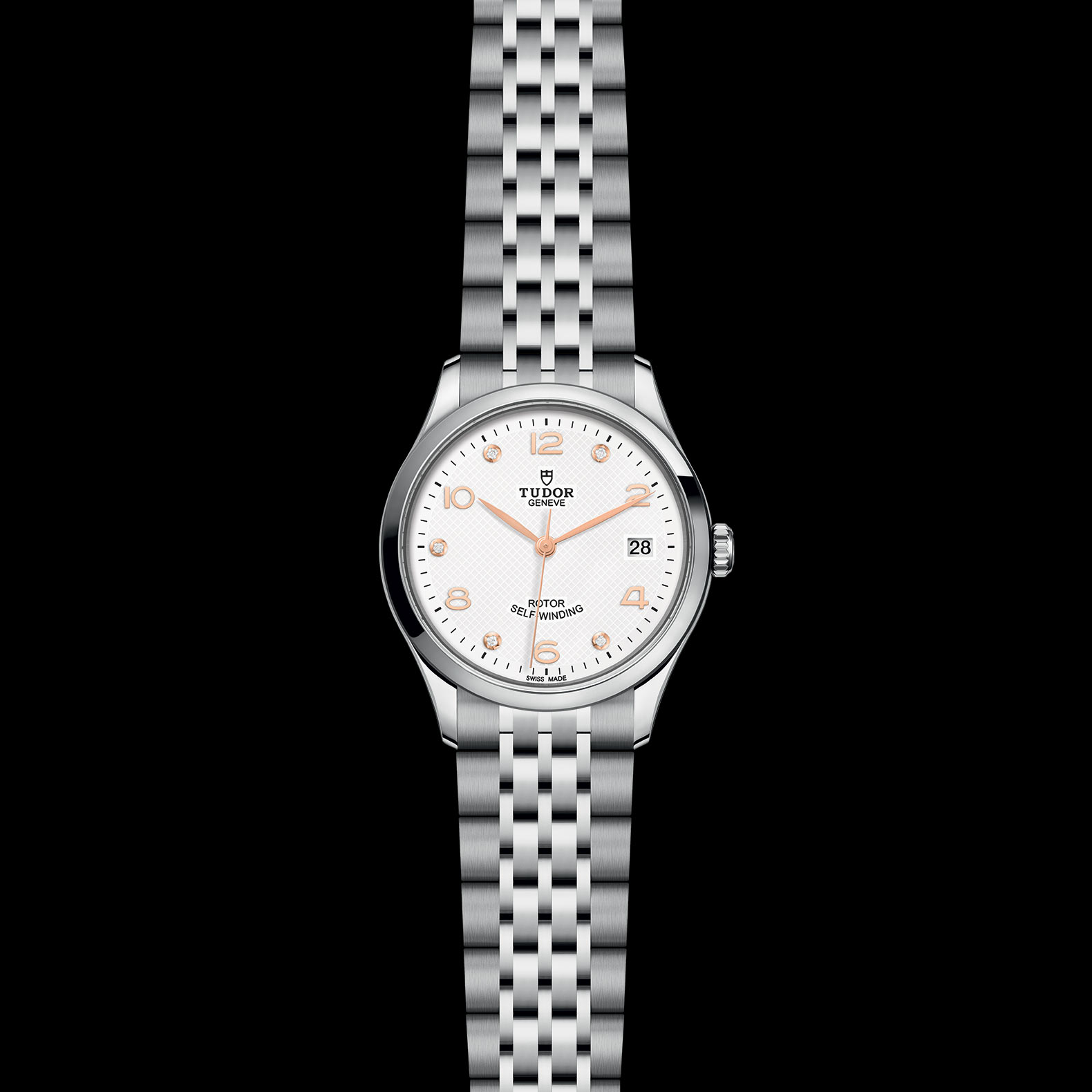 Steel bracelet, 7 rows, satin-brushed external links, polished centre links, with folding clasp and safety catch