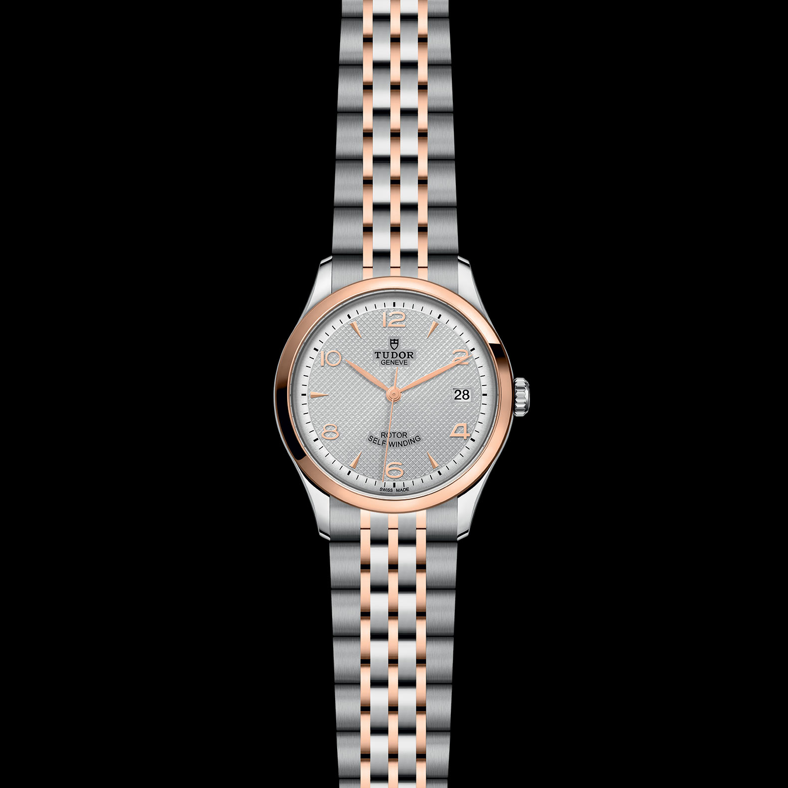 First center links in steel or solid rose-gold. Remaining center links in steel or steel covered by a 0.2mm rose gold cap
