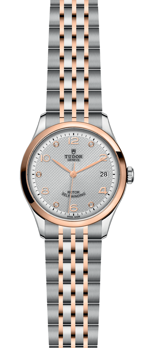 First center links in steel or solid rose-gold. Remaining center links in steel or steel covered by a 0.2mm rose gold cap
