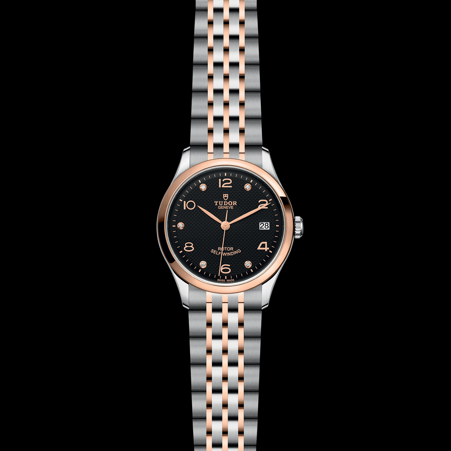 Smooth steel bezel with polished finish covered by a 0.3mm rose gold cap