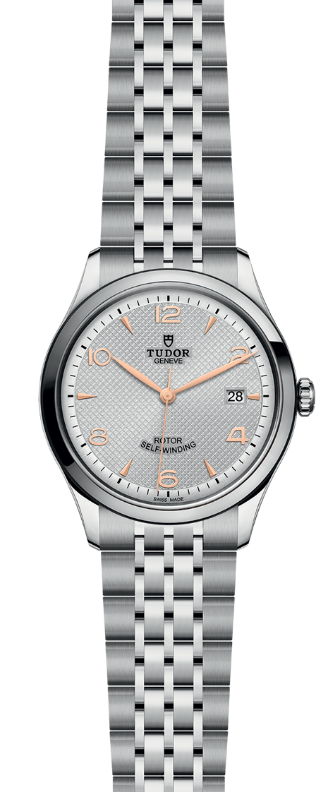 Steel bracelet, 7 rows, satin-brushed external links, polished centre links, with folding clasp and safety catch