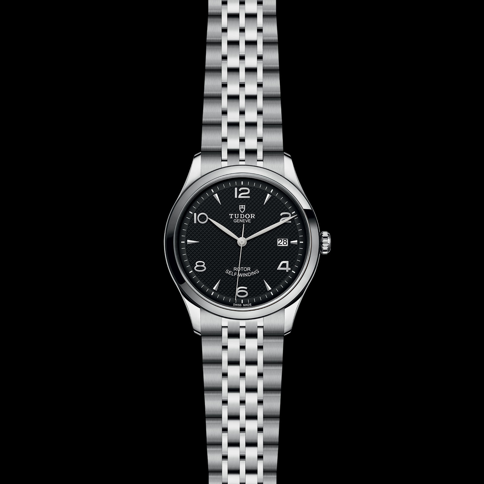 Steel bracelet, 7 rows, satin-brushed external links, polished centre links, with folding clasp and safety catch