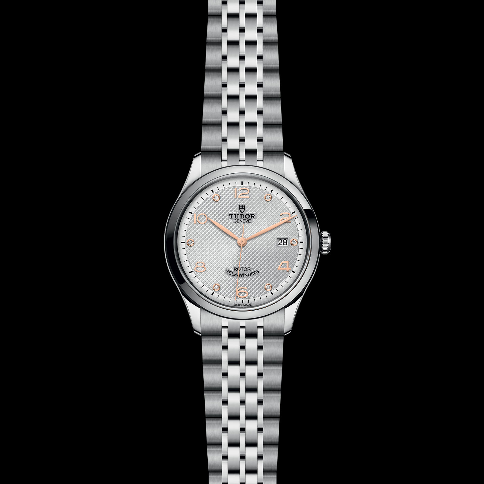 Steel bracelet, 7 rows, satin-brushed external links, polished centre links, with folding clasp and safety catch