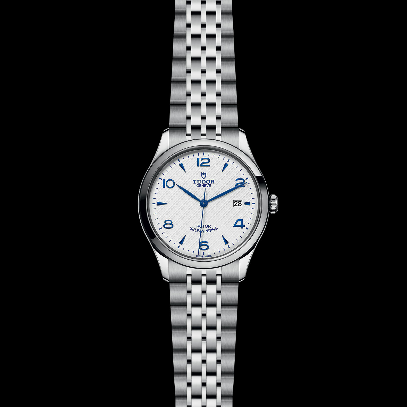 Steel bracelet, 7 rows, satin-brushed external links, polished centre links, with folding clasp and safety catch