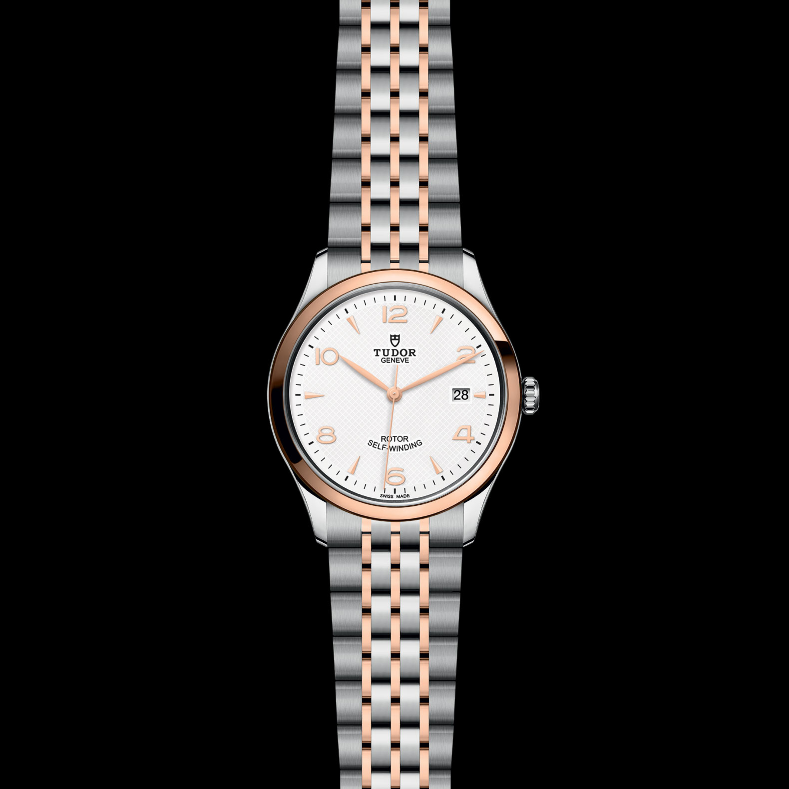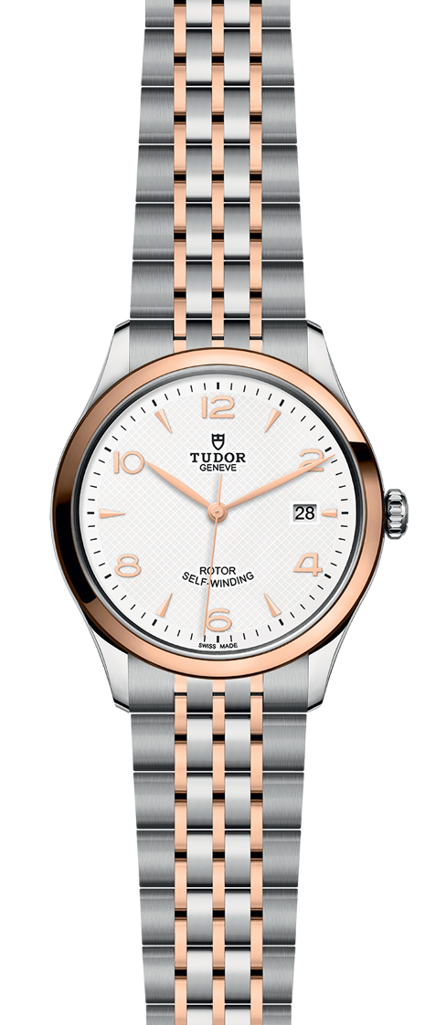 First center links in steel or solid rose-gold. Remaining center links in steel or steel covered by a 0.2mm rose gold cap