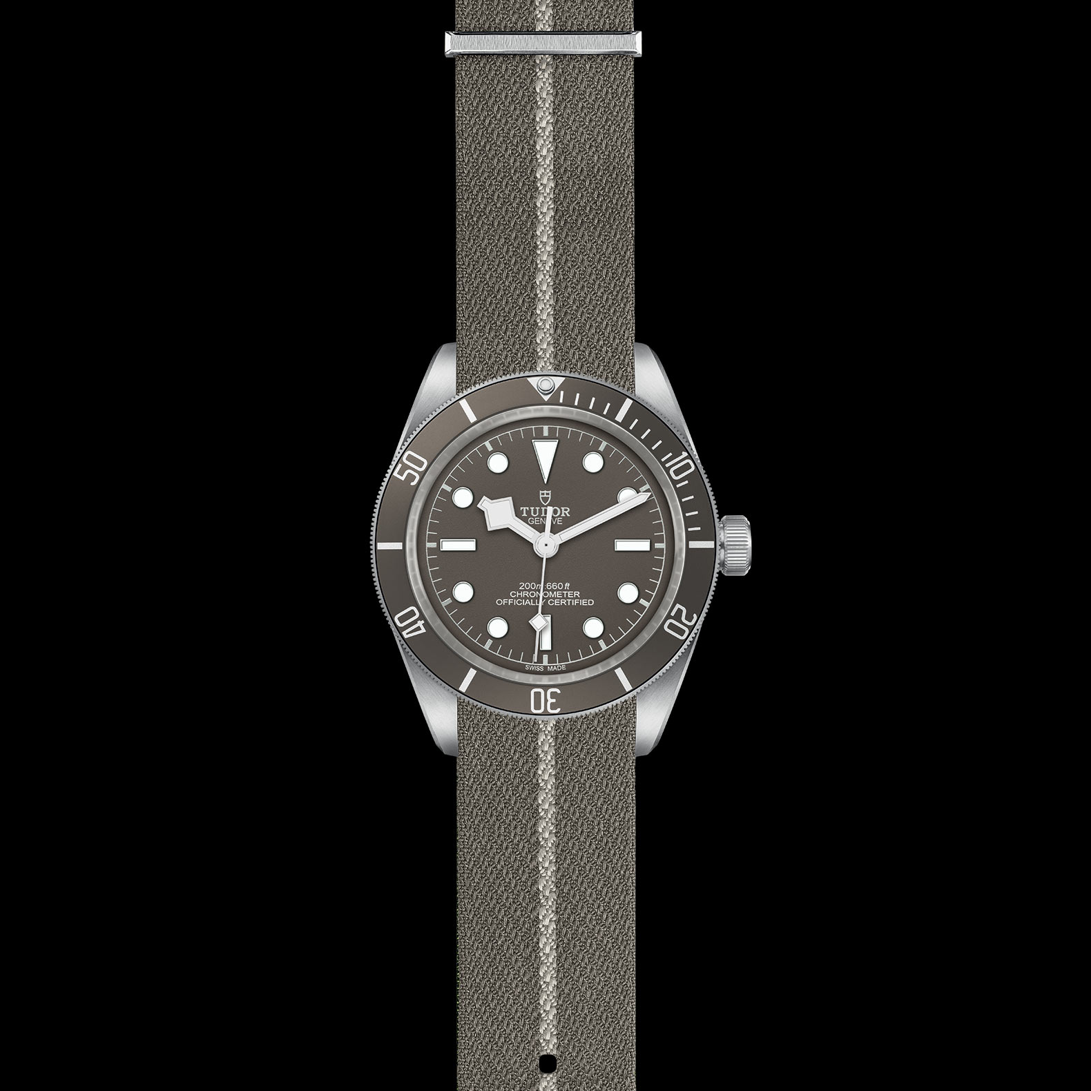 925 silver screw-down winding crown, with the TUDOR rose in relief with circular satin-brushed 925 silver winding crown tube