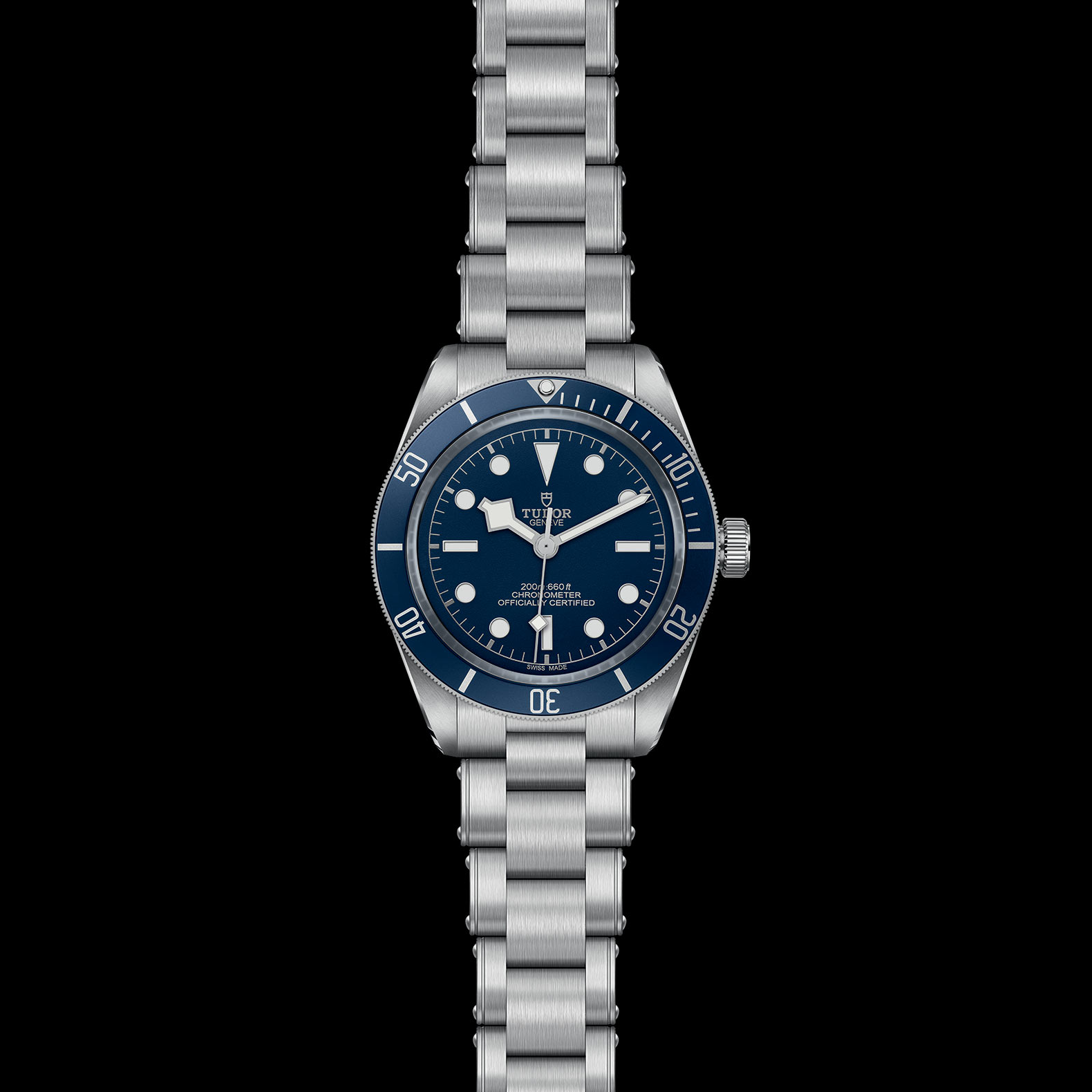 Steel screw-down winding crown, with the TUDOR rose in relief, with circular satin-brushed steel winding crown tube
