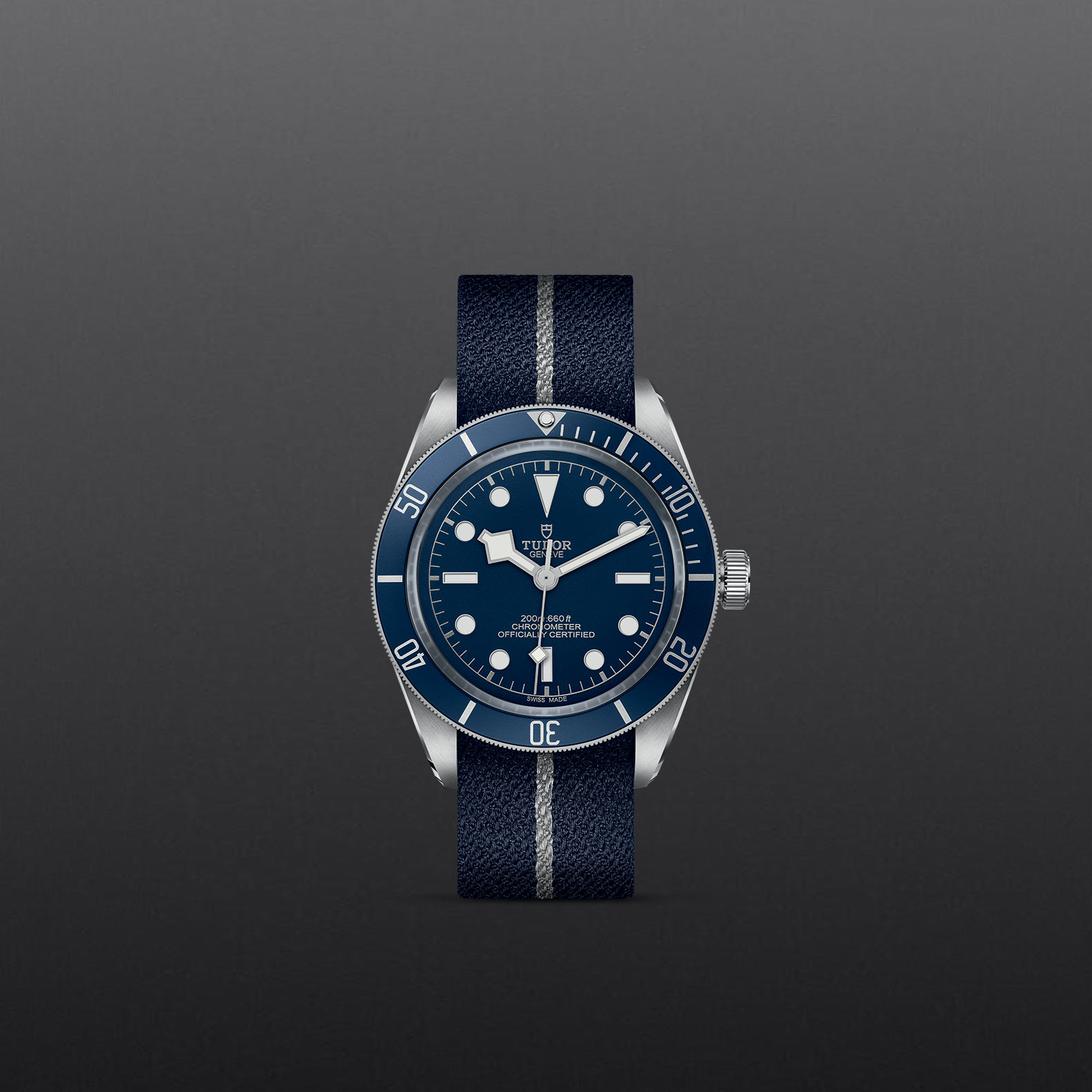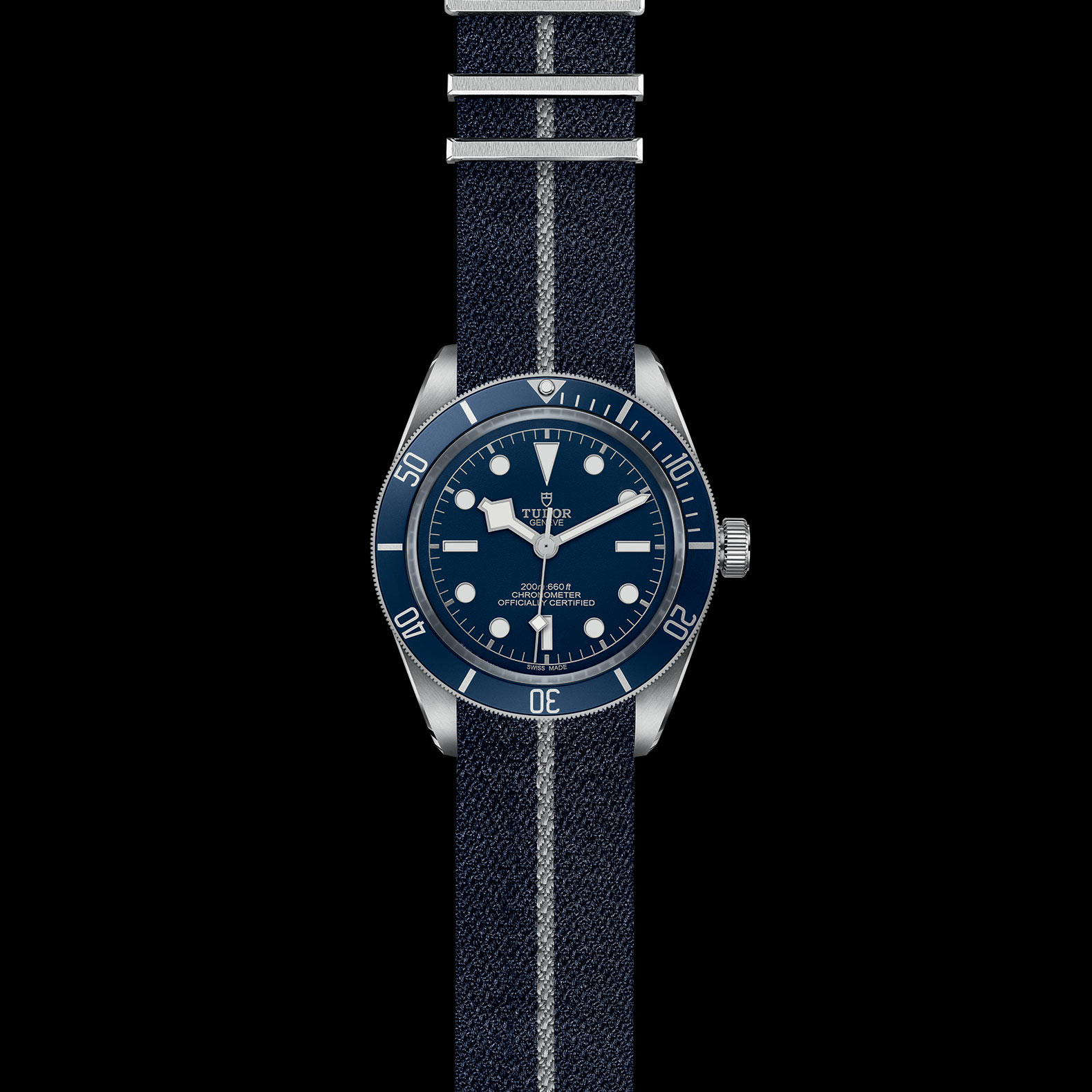 Steel screw-down winding crown, with the TUDOR rose in relief, with circular satin-brushed steel winding crown tube