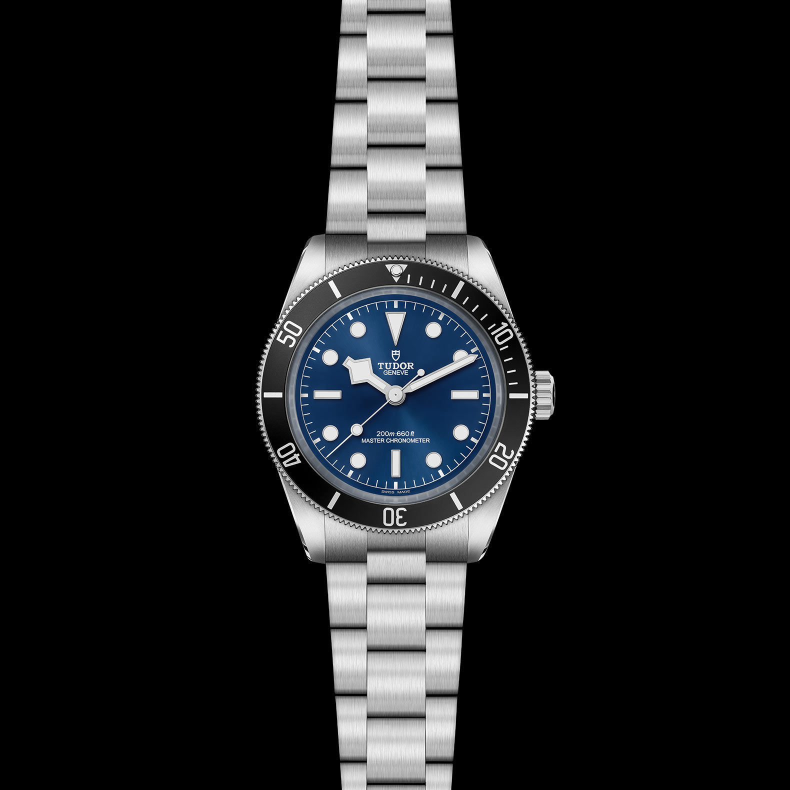 Sun-brushed TUDOR Blue, domed, with applied hour markers