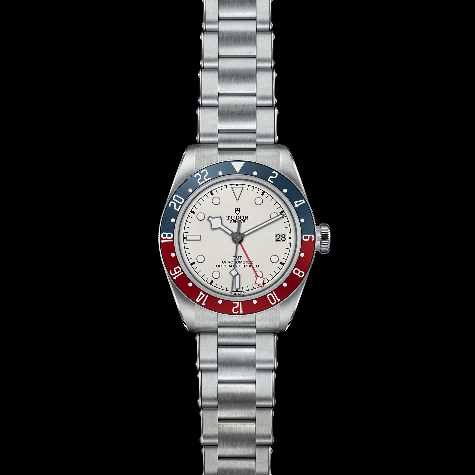 Steel screw-down winding crown, with the TUDOR rose in relief, with circular satin-brushed steel winding crown tube