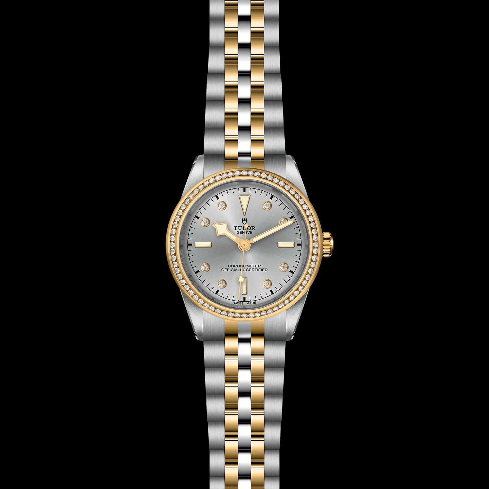 First center links in steel or solid yellow gold. Remaining center links in steel or steel covered by a 0.2mm yellow gold cap. TUDOR "T-fit" folding clasp with safety catch. The logo on the catch is made of solid yellow gold