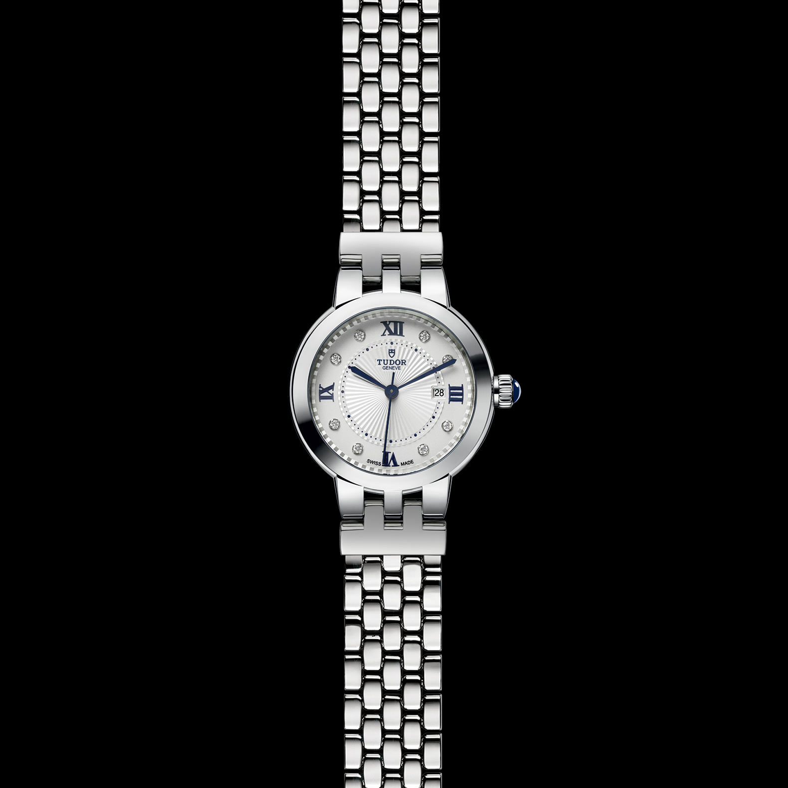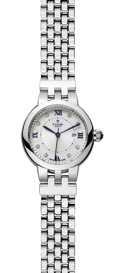 Steel screw-down winding crown, with transparent blue spinel cabochon