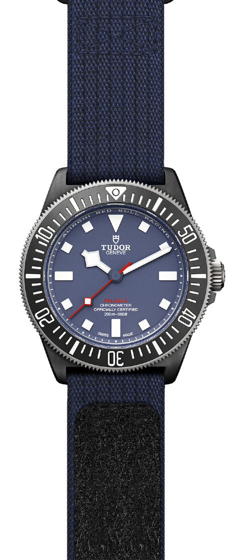 42mm black carbon composite case with matte finish and Alinghi Red Bull Racing logo engraved on the case back