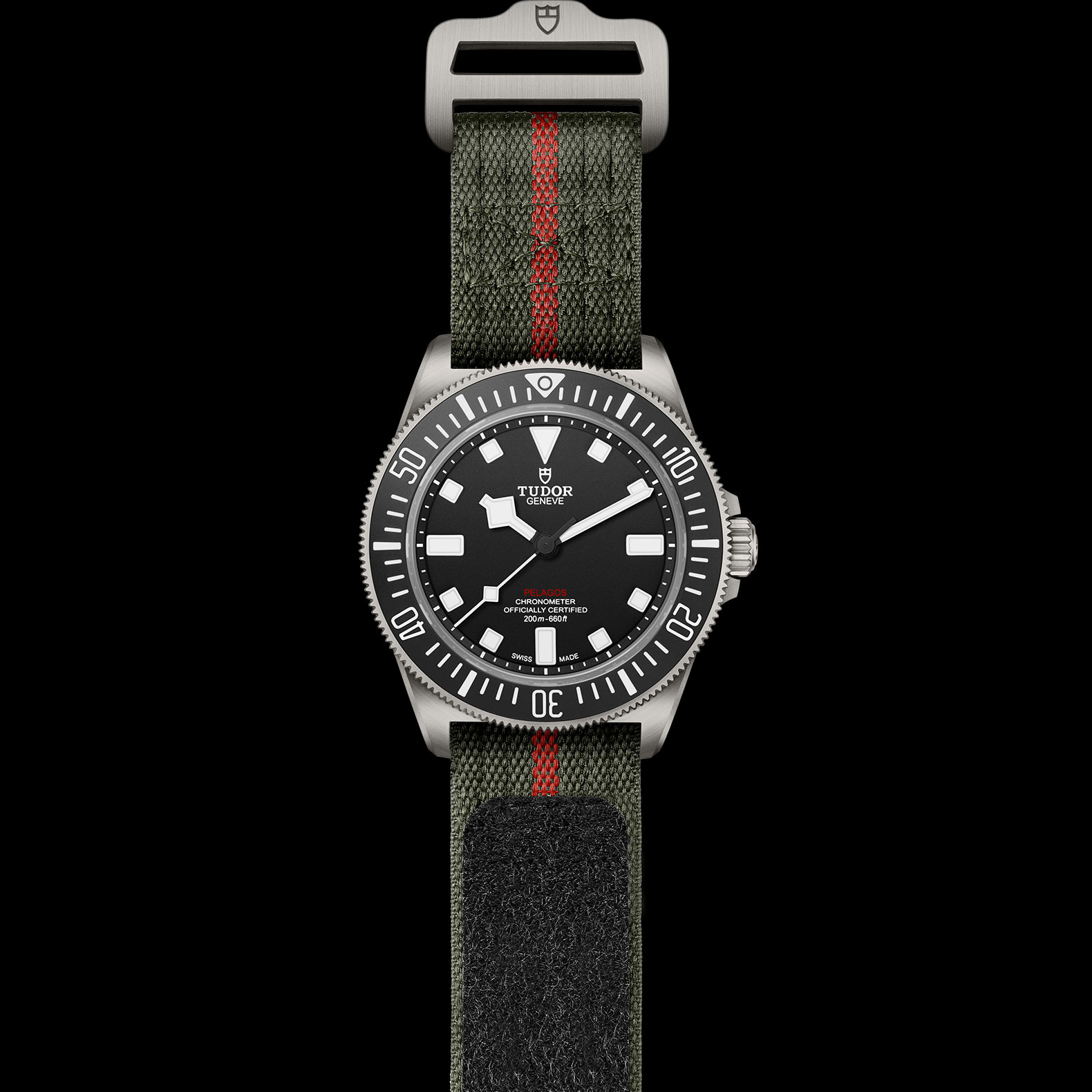 Titanium case, 42mm in diameter, 12.75mm thick, 52mm from lug to lug, satin-brushed finish Fixed bracelet bars Steel case back