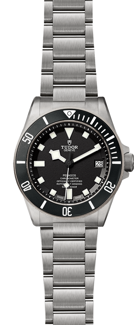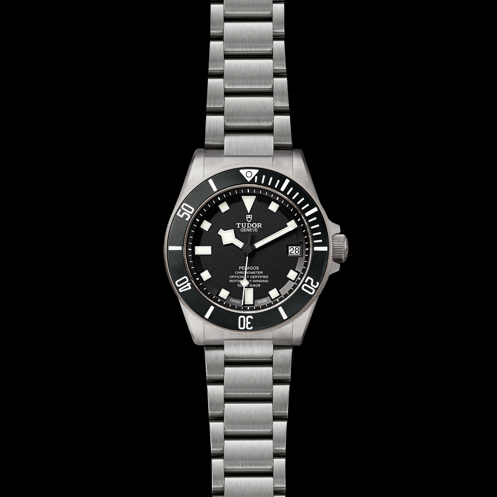Titanium winding crown with TUDOR logo in relief Helium escape valve at 9 o’clock