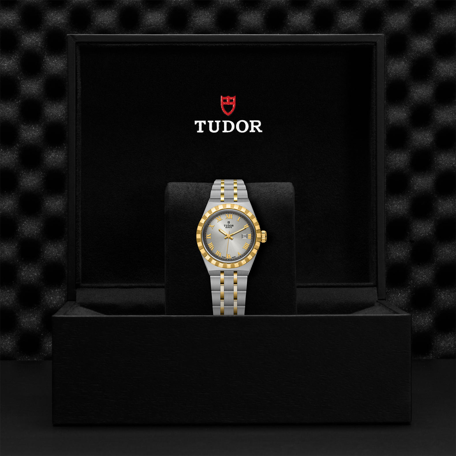Notched bezel in yellow gold, alternating cut grooves and polished finish