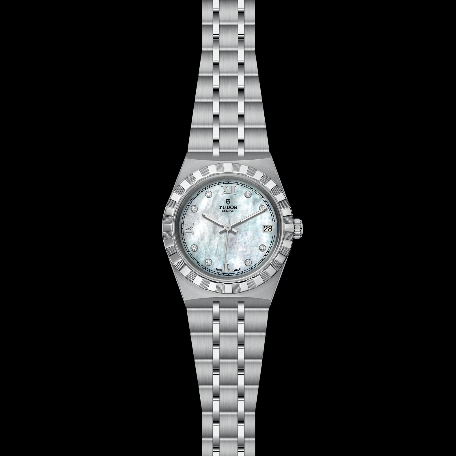 Integrated bracelet in steel, 5 rows, satin-brushed external and central links, polished intermediate links, with folding clasp and safety catch
