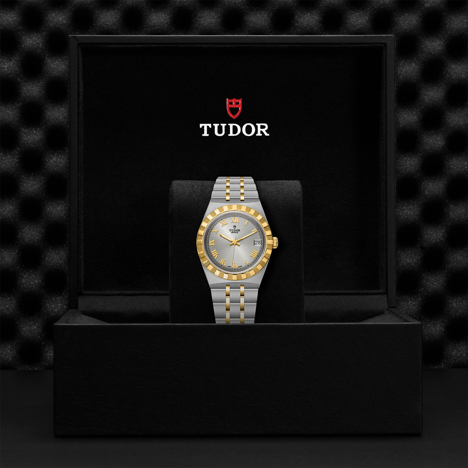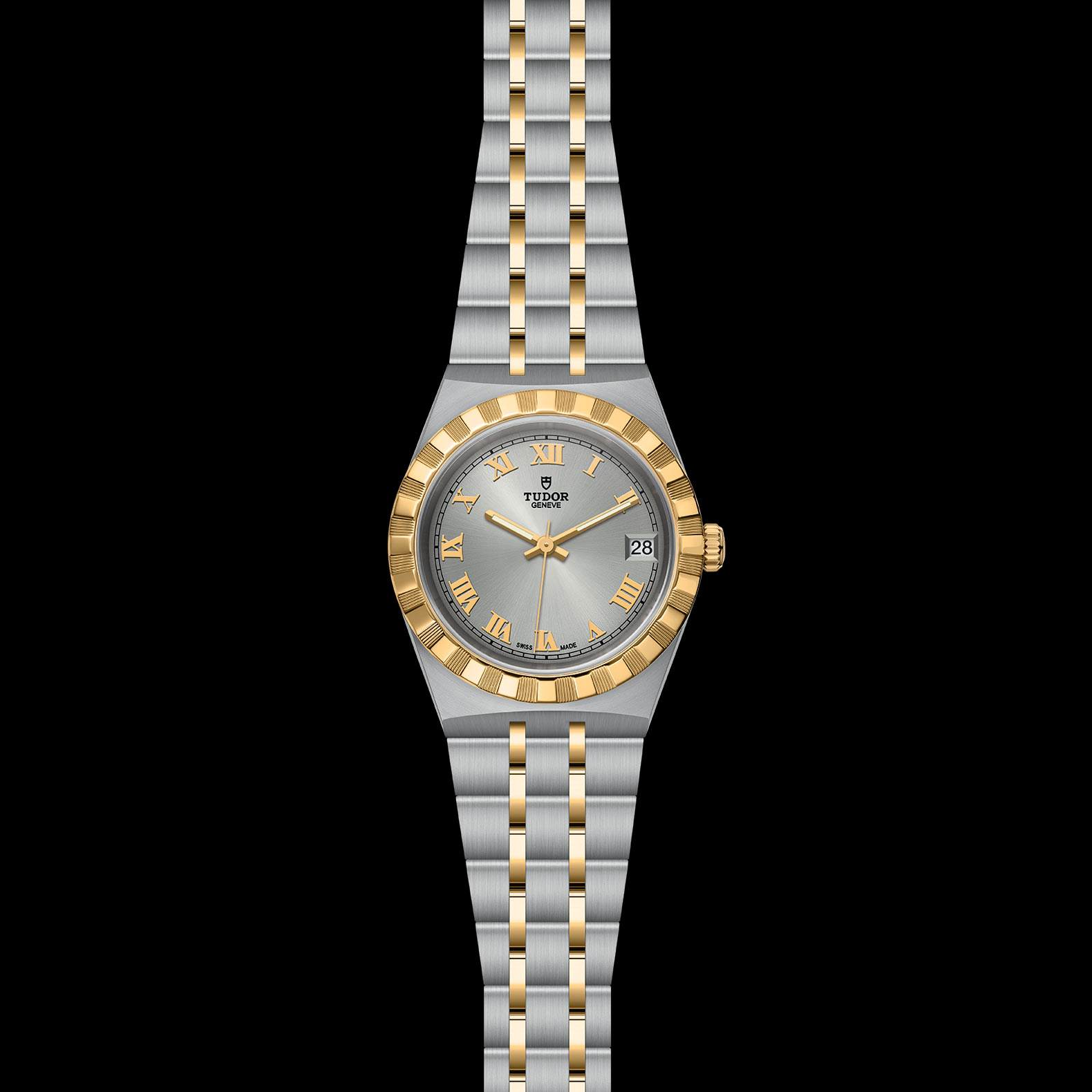 Screw-down winding crown with the TUDOR logo. Steel covered by a 0.1mm yellow gold cap