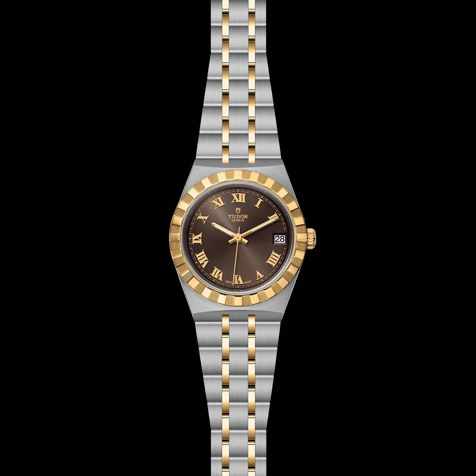 Screw-down winding crown with the TUDOR logo. Steel covered by a 0.1mm yellow gold cap